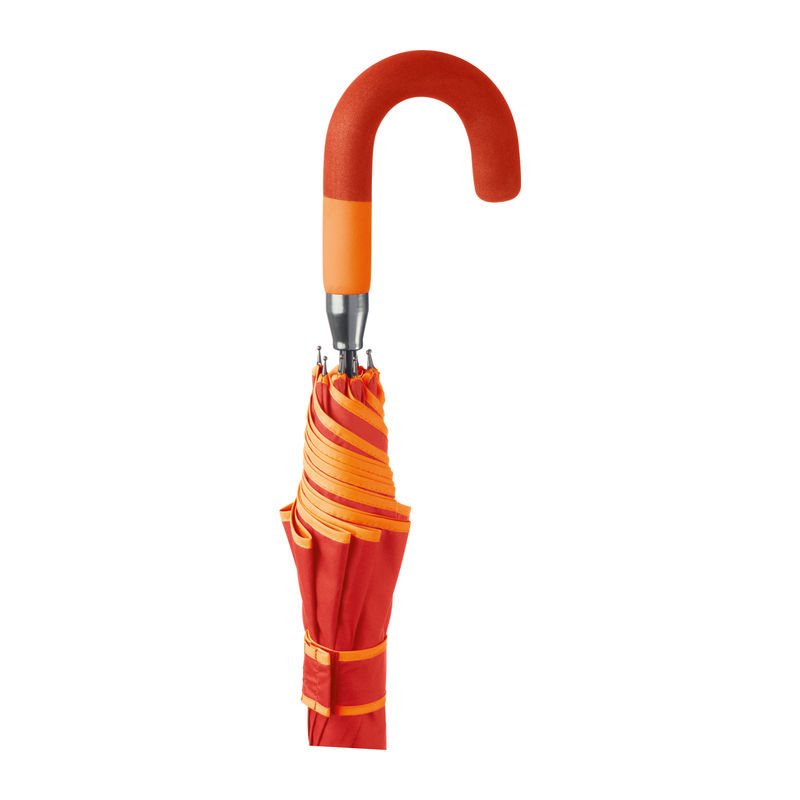 DežnikiAvtomatski dežnik iz 190T pongee materiala z kovinskim ročajem, EVA oprijemom, barvnim robom in vrhom ročaja. Vaš logotip je mogoče natisniti na en segment.