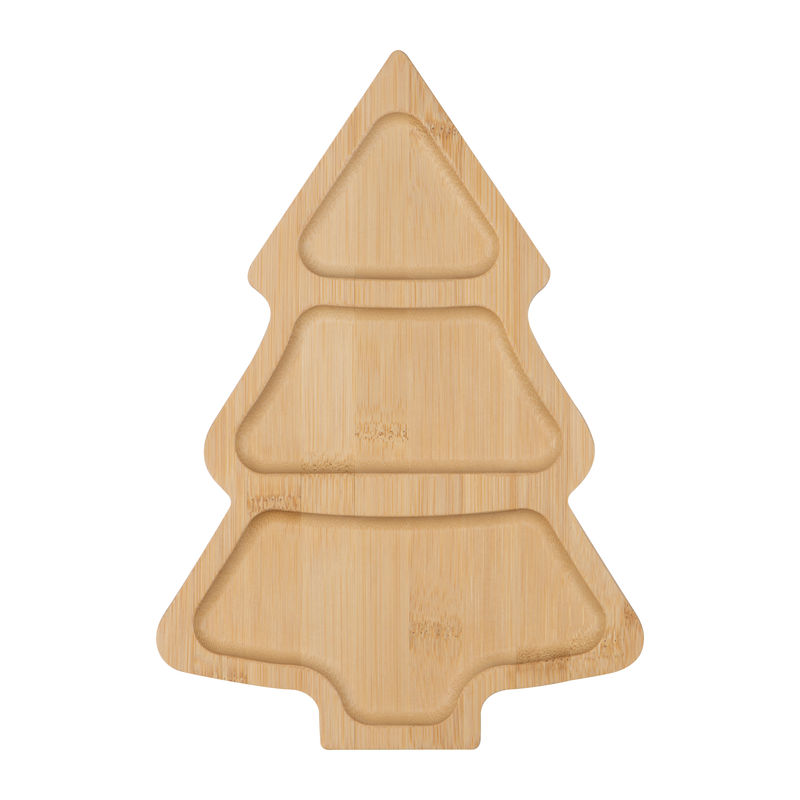 Kuhinjski pripomočkiBambusov pladenj za prigrizke v obliki božičnega drevesa, s tremi predelki. Eleganten, dekorativen dodatek za adventni in božični čas. Vsaka enota in gravura sta edinstvena zaradi naravnega bambusovega materiala.