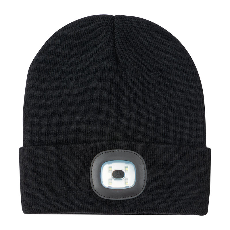 Varnostni pripomočkiRPET kapa z zloženim robom in vgrajeno polnilno LED svetilko (200 mAh), velikosti 21,5 x 19,5 cm. Vključuje poliestrski našitek na zadnji strani za osebno blagovno znamko. Topla in praktična za temne razmere.