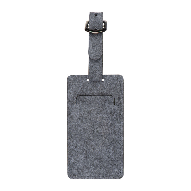 Potovalni pripomočkiObesek za prtljago iz filca z vstavljivo papirnato kartico za osebno identifikacijo.
