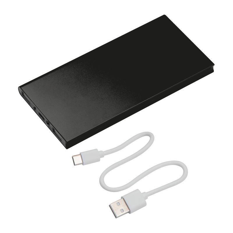 Polnilne baterijeAluminijasta power bank z indikatorjem napolnjenosti in kapaciteto 8.000 mAh. Dobavljeno s polnilnim kablom USB-C.