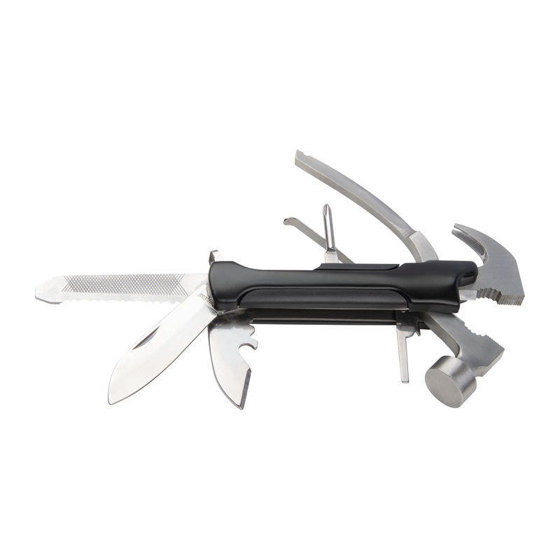 Večnamensko orodje z dvema reziloma, pilo, žago, ploščatim izvijačem in odpiračem za steklenice; služi tudi kot popolnoma funkcionalno kladivo.