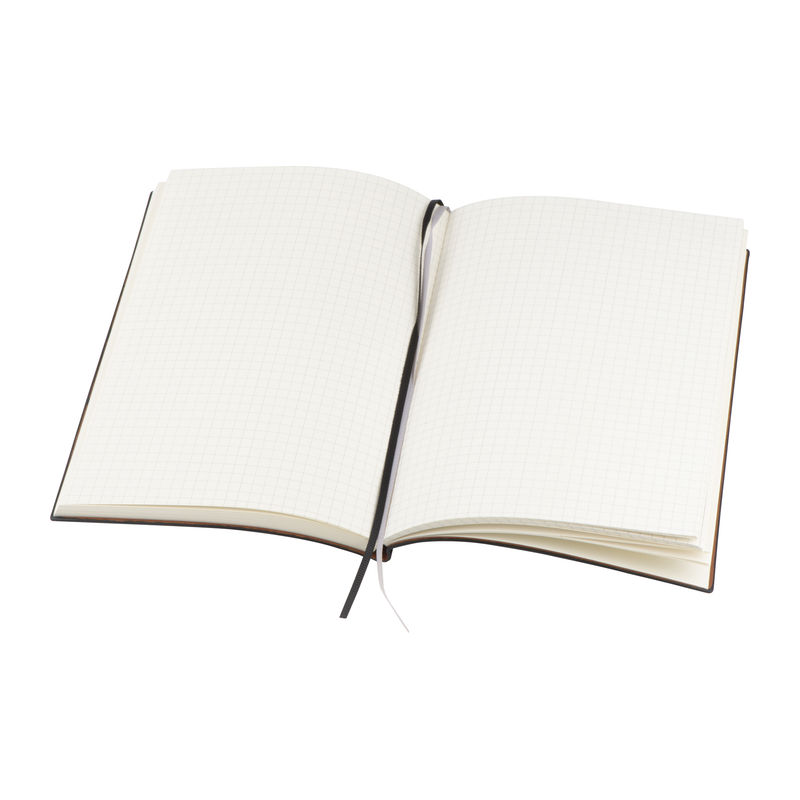 Beležke in mapeZvezek formata A5 z 200 karirastimi stranmi, fleksibilnim mehkim PU ovitkom in dvema zaznamkoma.